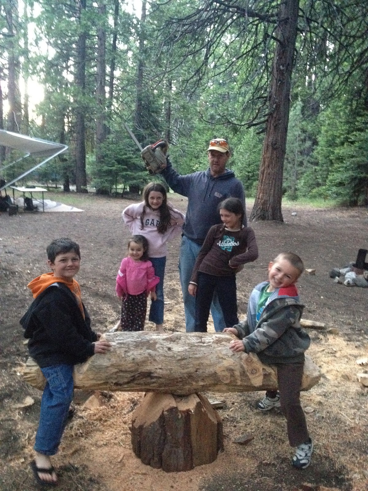 Oh Kurt. My dear Kurt. The boy can't seem to sit still. He brought his chain saw and found a log, or two and got to work . . . creating a teeter totter.